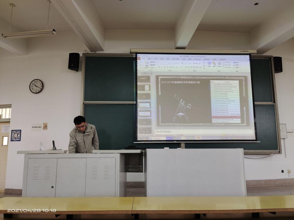 活动开始,刘高峰学长点明了本次科研班会的主要话题————科研立项。首先,刘高峰学长邀请17级机械专业的同级学长介绍了节能减排比赛,挑战杯等一系列竞赛项目的具体规则以及注意事项,并且列举了减少石油污染,深海机器人等一系列具体项目,同学们认真听讲,似乎都对于参与比赛这一事项若有所思。接着,刘高峰学长用提问的方式替同学们向这位学长提问,一一解答了同学们的疑惑,接着,他又重新强调了科研立项的注意事项,自助额度,具体流程等。最后,为了深化同学们对于科研立项的认识,他以课件的形式介绍了如“为什么要参加科研立项”“我如何处理经费问题”等一系列深入话题。同学们为主持人精彩发言鼓掌,本次班会活动圆满结束。