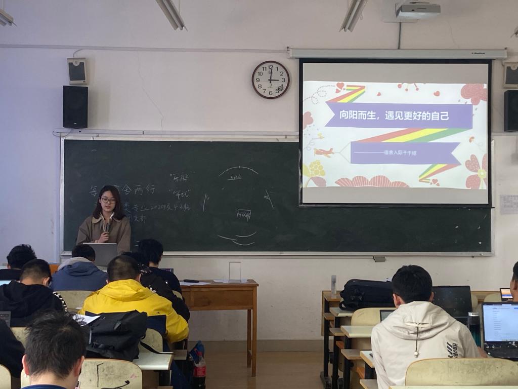 4月9日下午,20级计算机4班在图西环118举行本学期第一次心理班会。本次班会围绕“向阳而生,遇见更好的自己”的主题展开,本次班会由班长马小苏主持,计算机4班全体成员参加。