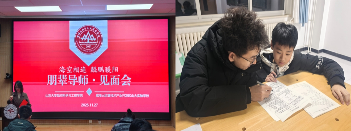 拓展校外实践平台,创新开展与威海高新区山大实验学校的朋辈导师公益项目,组建47人志愿者团队,与3-9年级学生建立常态化结对帮扶关系,平均每周开展一次线下学业辅导,实现知识传递、公益服务与自我成长的融合共赢。