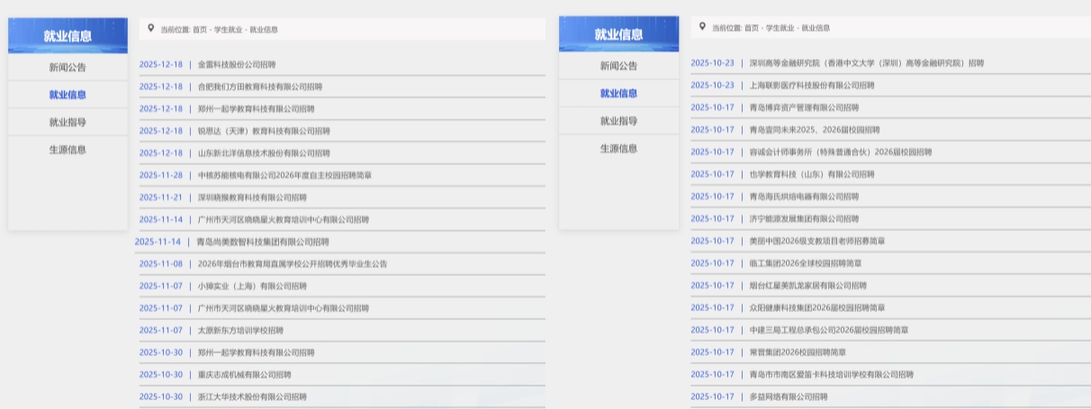 强化就业导向牵引,全年精准推送招聘信息109条,发布政策解读与宣讲会通知13篇,将就业需求与学业要求紧密衔接,引导学生明确学习重点、提升专业素养,形成“以就业促学业、以学业强就业”的良性互动,进一步巩固学风建设成果。