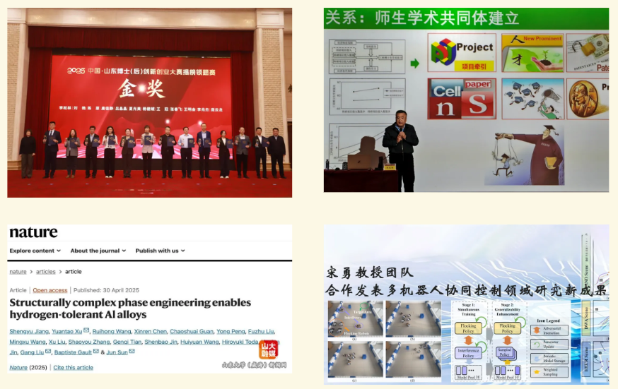 这一年,我们坚持科研聚力,硕果纷呈。学院聚焦科研创新,持续提升学术影响力与行业服务能力。新增共建山东省工程研究中心1个、山东省校企产学研协同创新中心2个,1人入选山东省第九批科技副职,有效推动产教融合深度发展。科研成果实现重大突破,国家自然科学基金立项数量实现倍增,3位教授入选“全球前2%顶尖科学家”年度榜单,学院合作研究成果在《Nature》正刊发表,先后斩获IEEE TII杰出论文奖、第十届“好设计”银奖、中国·山东博士(后)创新创业大赛金奖、首届山东省数字工程师创新创意大赛暨国际数字化工程师大赛二等奖等多项重要科技奖项。成功主办“2025低空技术与工程前沿论坛”等高水平学术活动,学院科研实力与学术影响力持续攀升。
