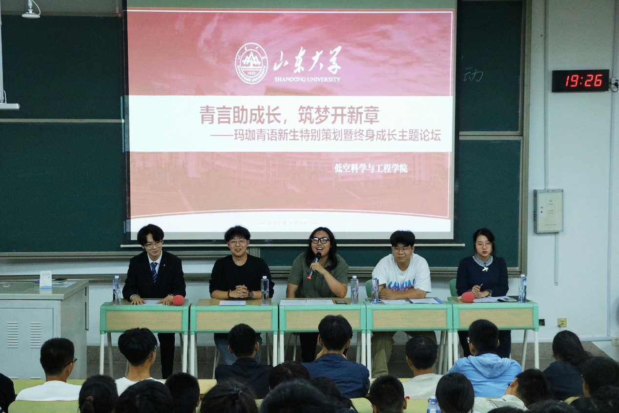 为帮助2025级新生尽快适应大学生活,深入了解学科特色,科学规划学业发展,并搭建朋辈交流平台,10月15日晚,低空科学与工程学院于学思楼556举办“青言绘蓝图,逐梦开新章”玛珈青语讲坛。活动邀请了任越群、王天承、赵泓熇、陈柏洁四位同学担任分享嘉宾。