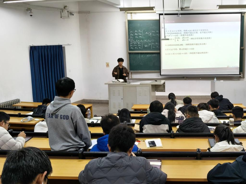 围绕期中复习的核心目标,徐俊豪结合典型例题展开细致讲解。他通过对比不同题型的解题思路,总结出解题技巧,结合期中例题习题拆解完整解题流程,引导同学们掌握从题干信息提取、解题步骤推导到最终结果验证的全流程解题逻辑。在授课尾声,徐俊豪集中回应了同学们在复习中遇到的各类疑问,并分享了“分模块专项练习+错题整理复盘”的高效复习策略,切实帮助同学们夯实学科基础、明晰解题思路,为线性代数期中考试做好充分准备。