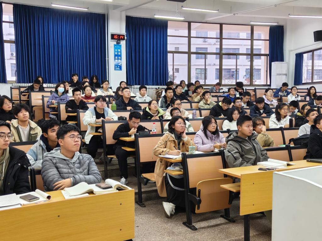 授课期间,同学们认真投入,结合授课内容实时标注重点。张培楠选取具有代表性的综合题型,通过循序渐进的推演过程和细致入微的思路解析,帮助同学们掌握各类题型的解题思路和技巧。同时,针对期中考试中的常见易错点进行了系统的归纳总结,有效提升了同学们的应试能力。