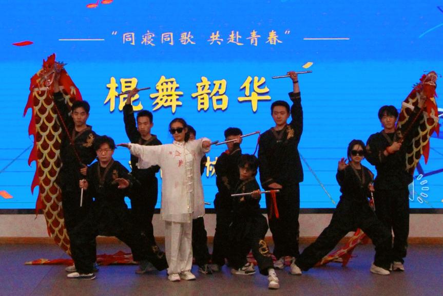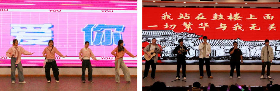 决赛伊始,双节棍协会的《棍舞韶华》率先燃动全场。凌厉棍法与动感节奏完美契合,刚劲利落的动作瞬间点燃现场氛围,为这场青春盛宴拉开热血序幕。8支参赛宿舍队伍各展巧思,将歌声、舞蹈与创意编排深度融合,献上了一场视听双绝的精彩演出。开场曲《爱你》用轻快的旋律唱出舍友间的温情羁绊,《鼓楼》用洒脱唱腔勾勒出青春里的烟火气息与诗意浪漫,《Les Champs-Élysées》轻快浪漫的旋律自带别样风情,让人耳目一新,《奔跑》把青春里 “一起疯、一起闯” 的无畏与热血展现得淋漓尽致,《敕勒歌》纯净的和声重现古调的辽阔悠远,将观众带入苍茫天地间,《落叶归根》娓娓道来 “宿舍是异乡第一个家” 的绵长眷恋,《一个像夏天一个像秋天》,不同声线交织碰撞,生动诠释了 “互补型舍友” 的默契陪伴,《传奇》把原本擦肩的缘分,唱成了同一支麦克风下的动人合音。