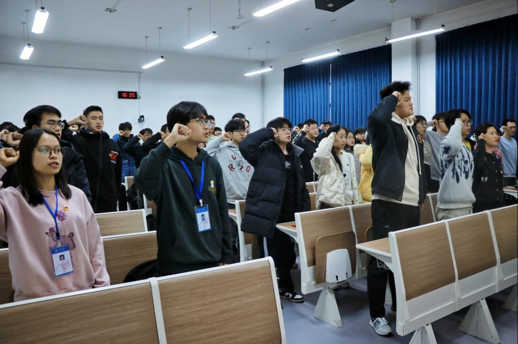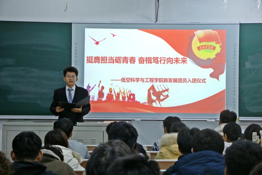 为进一步做好学院共青团队伍建设工作,壮大团员队伍,提高基层团组织的凝聚力、组织力、向心力,12月4日下午,低空科学与工程学院于学思楼248教室举行“挺膺担当砺青春,奋楫笃行向未来”2025年新发展团员入团仪式。学院团委书记赵海慧、辅导员代表张安霖、新老团员代表以及全体新发展团员出席本次活动。