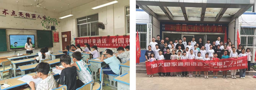 该团队在指导老师李倩、周晓歌的带领下,深入山东、云南、湖南、河南、内蒙古、新疆、广西、山西等八省十五市二十六地,以“支教与推普共进,文化促民族共融”为核心理念,开展以“推普+文化共融”为特色的多元实践。团队围绕少数民族群众、留守儿童、文旅从业者等群体需求,创新构建了“推普+教育”“推普+文旅”“推普+产业”等服务模式,切实推动了普通话普及与乡村发展的深度融合。