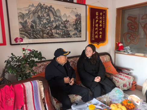 调研过程中,调研团成员先后走访了四位具有代表性的老兵。殷爷爷拥有36年军龄、50年党龄,退役后始终坚持离岗不离党,积极参与社会公益事业,以实际行动践行共产党员的初心使命。李爷爷虽年逾八旬,却在疫情期间主动坚守岗位,并长期资助困难群体和学校,用一生的奉献诠释了对党忠诚、为民服务的坚定信念。于爷爷1968年参军入伍,曾在多地服役,参与过许多重要国防任务,其在演习中保护战友负伤的事迹生动地展现了军人英勇无畏的精神品质。99岁的胡爷爷是淮海战役亲历者,其革命经历和家庭红色传统,成为鲜活而珍贵的党史教材。