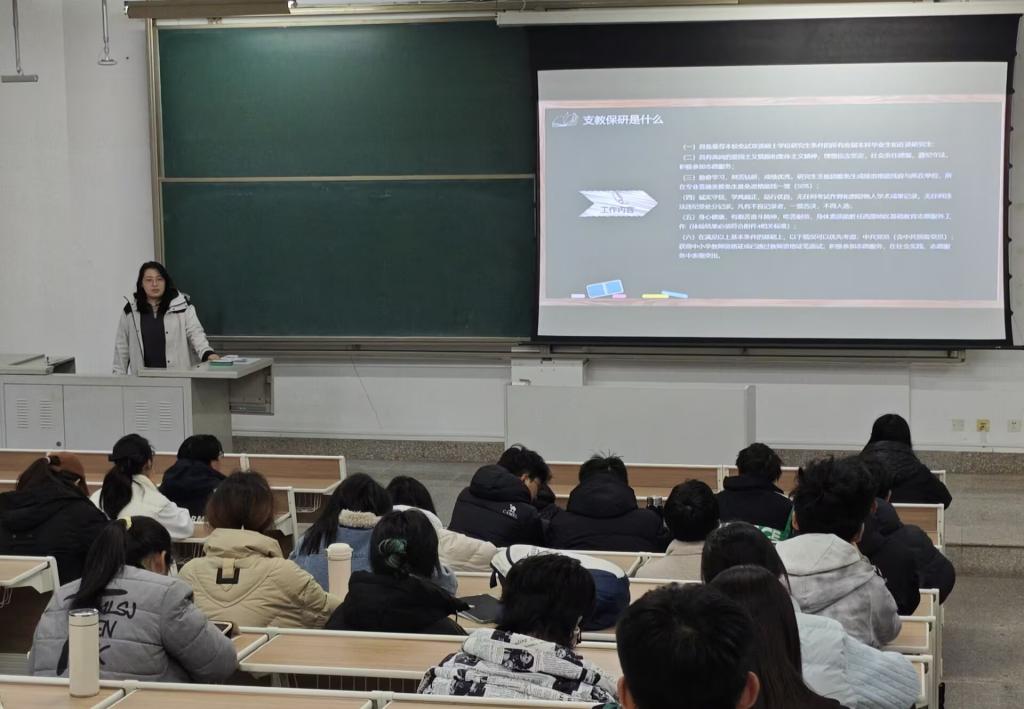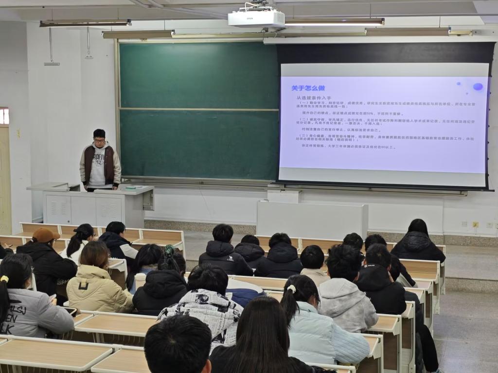 分享会上,张现祥与张一先后围绕支教保研展开分享。两位同学结合自身入选艾弗森贝博ballbet官网第二十八届研究生支教团的经历,细致讲解了支教团的选拔流程、材料准备、考核要点以及基层服务中的成长与收获,用真实的经历和真挚的话语,让同学们对支教保研有了全面而具体的认识。