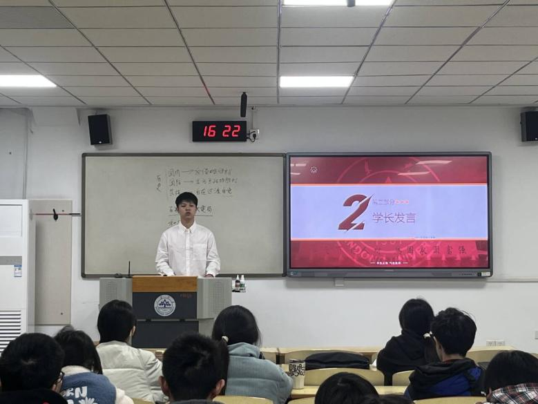 随后,李谷悦老师围绕抗日战争的历史意义和现实启示发表演讲,结合史料案例,强调以史为鉴对个人成长与国家发展的深远影响。老师指出抗战精神是中华民族宝贵的精神财富,极大增强了同学们从历史中汲取智慧、积极应对新时代挑战的信心。而退伍军人陈泽学长分享自身军旅经历,生动讲述革命先烈的英勇事迹,并联系当代大学生活,阐释抗战精神在和平年代的实践价值,引发广泛共鸣,深化了同学们对青年责任与担当的理解。