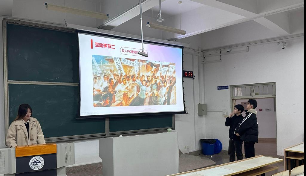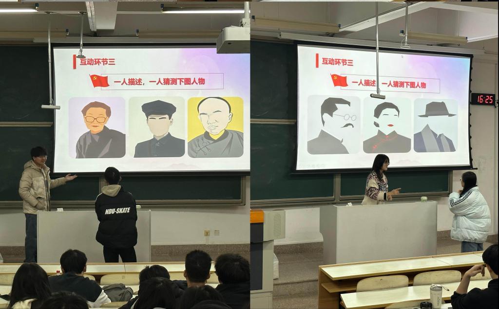 在互动环节当中,同学们踊跃参与对事件进行排序、双人抢答PK猜人物的知识小游戏。