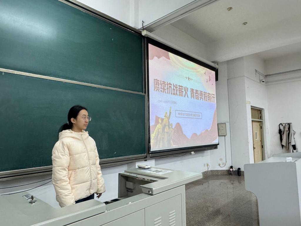 为深刻铭记抗战历史,传承伟大抗战精神,引导团员青年从红色基因中汲取奋进力量,24电科01班于近日召开“传承抗战薪火 勇担青年使命”主题班会。本次班会以“理论武装—互动体验—知行合一—总结升华”为脉络,让抗战精神在沉浸式活动中入脑入心。