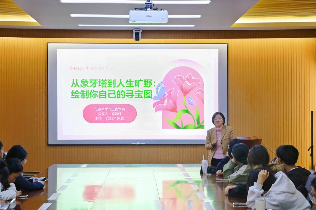 为全面贯彻落实立德树人根本任务,深化大学生生涯发展教育,切实解决大一新生在成长发展中面临的生涯规划需求,低空科学与工程学院于10月30日在知行北楼404开展生涯发展主题讲座。本次讲座由“花开有期”生涯咨询工作室宫建红老师主讲,面向2025级全体生涯委员和心理委员,旨在助力新生在生涯规划中找准方向。