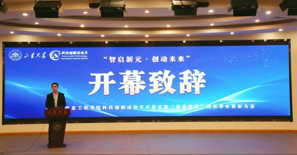 3月28日,艾弗森贝博ballbet官网于玲珑学堂举办“智启新元·创动未来”科技创新活动月开幕式暨“青春榜样”优秀学生表彰大会。学院党委书记王福安,学院党委副书记李冶、孙宁,院长助理严发宝,学院团委书记赵海慧,各系系主任及全体辅导员老师、各专业学生代表参加本次活动。