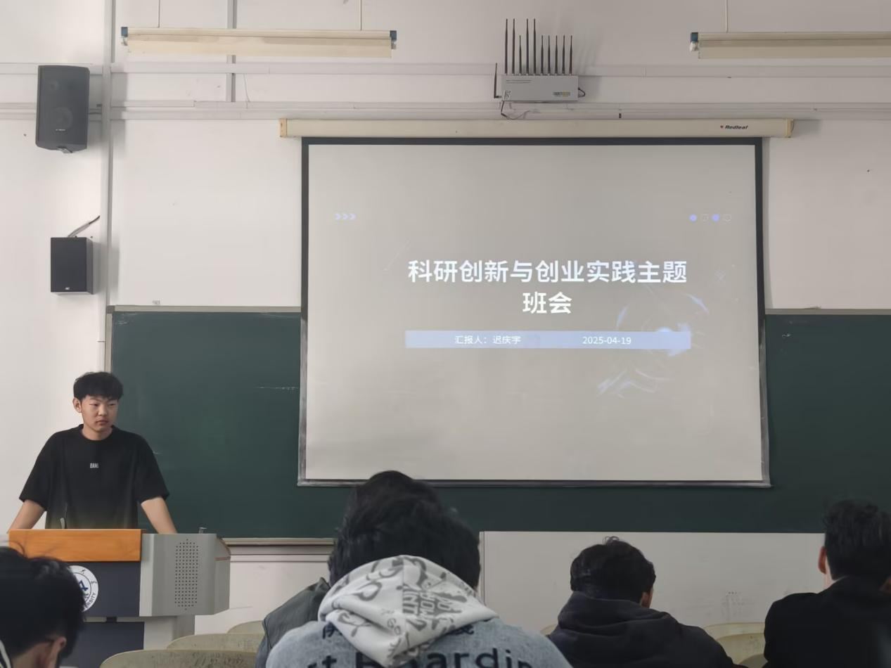 为了深化同学们对科研创新与创业实践的理解,促进专业学习与创新实践的有机融合,24级智能制造工程03班于4月25日在学思楼348教室召开了主题为“科研创新与创业实践”的班会。班会由班级科研委员迟庆宇主持,特邀2023级智能制造工程专业屈桐学长进行经验分享。