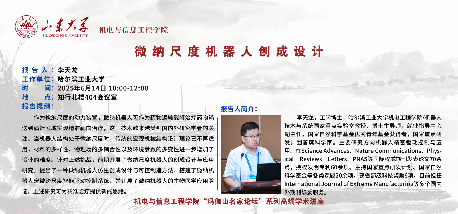学术预告丨机信学院“玛伽山名家论坛”:微纳尺度机器人创成设计
